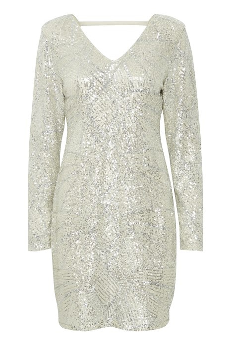 Så er den smukkeste festkjole fra Ichi landet! Denne kjole har det fineste mønster med palietter, lange ærmer og flot detalje på ryggen. Et super valg til diverse fester og begivenheder.Â