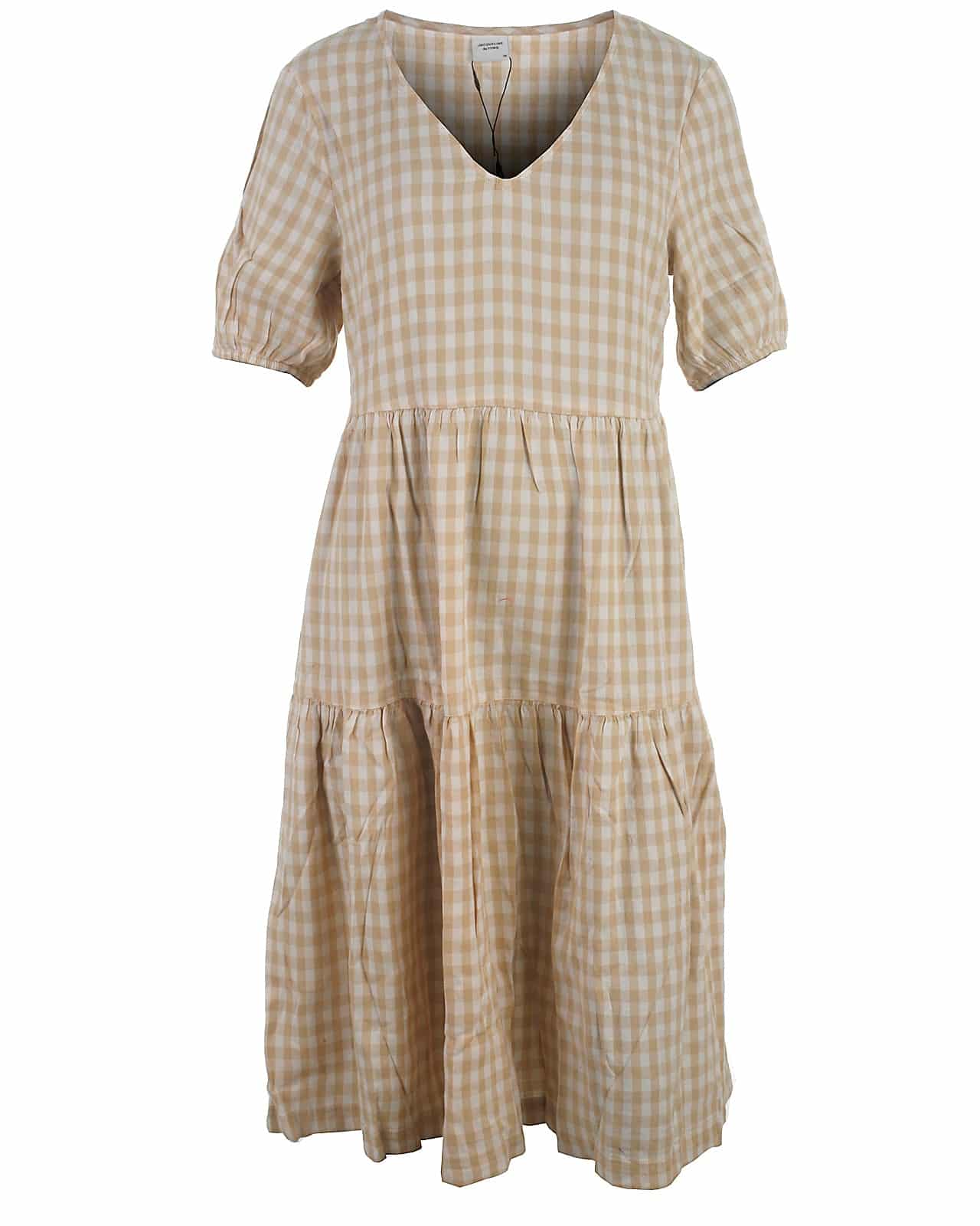 Sandfarvet-hvid ternet kjole fra Jacqueline De Yong
