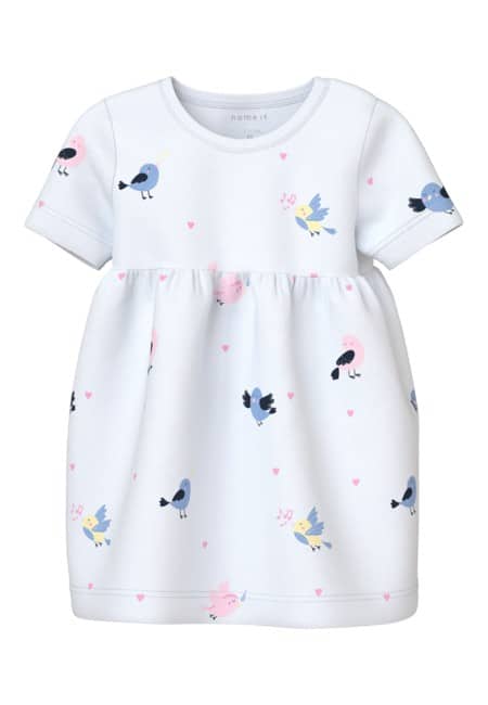 Super sød kjole fra name it. Den er med korte ærmer, er rund i halsen og er lavet i et blødt og lækkert materiale. Den har et sødt print med fugle over det hele.