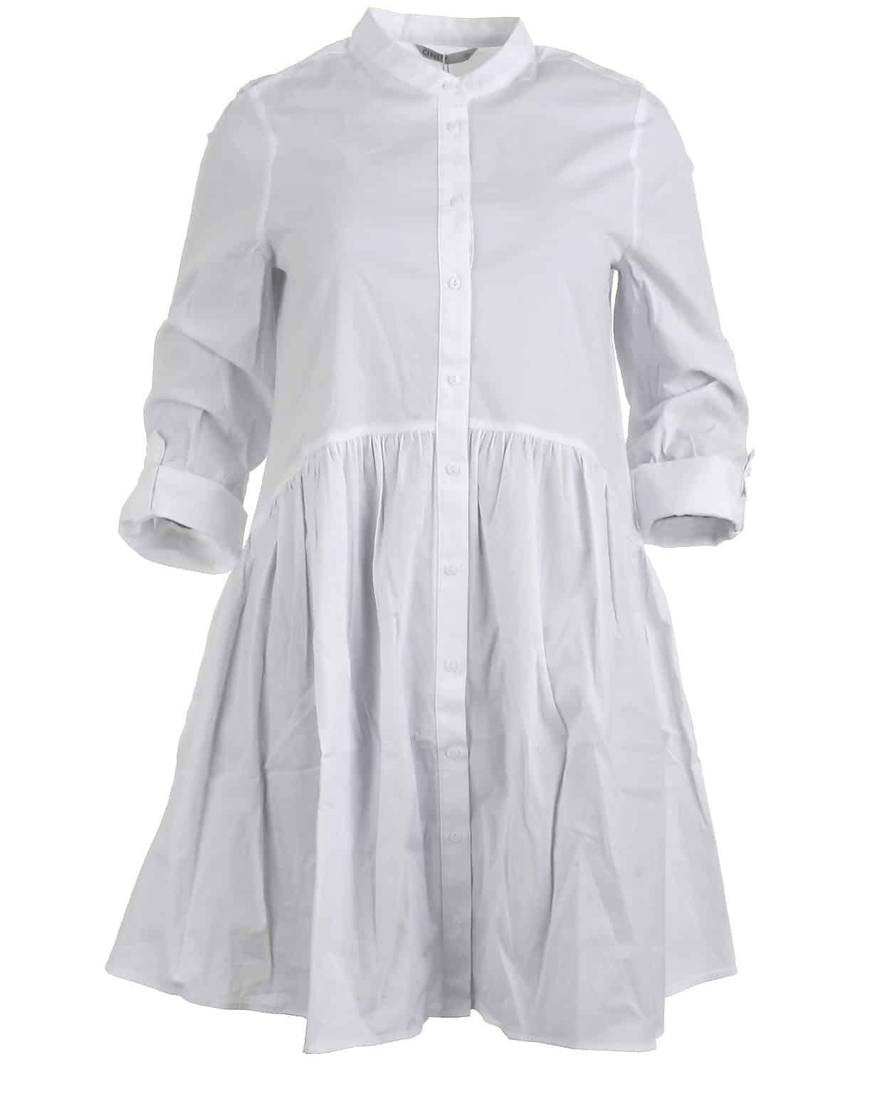 Only kjole, Ditte, hvidMærke: OnlyStyle: DitteFarve: HvidMateriale: 98% bomuld, 2% elastanVask: 30°Hvid kjole fra OnlyRund hals Lukkes med knapper på fronten3/4 ærmet som kan smøres op med knapFrill effekter ved nederste kant bagpåElastik ved taljen på fr