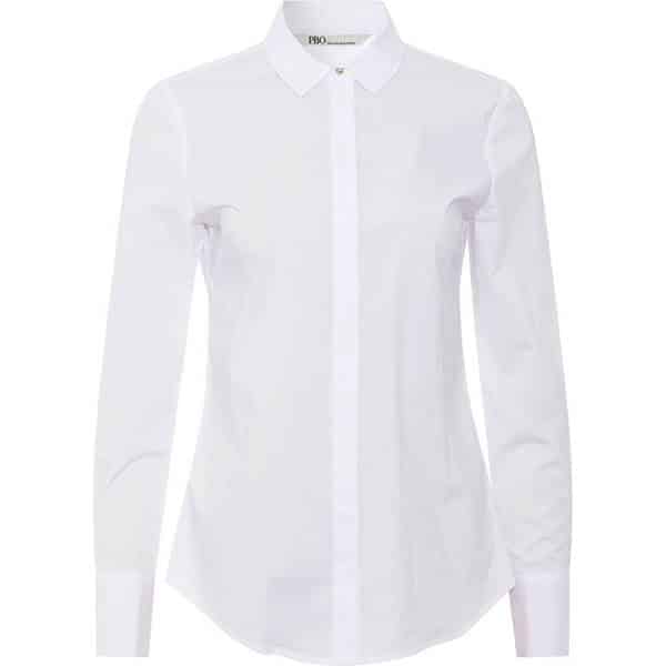 Klassisk skjorte fra PBO Meghan-skjorten er en klassisk hvid bomuldsskjorte med stræk, designet med en skjult knapstolpe og en traditionel krave ved halsudskæringen. Manchetterne er udstyret med en slids og justerbare knapper, og skjorten har bryst- og ry