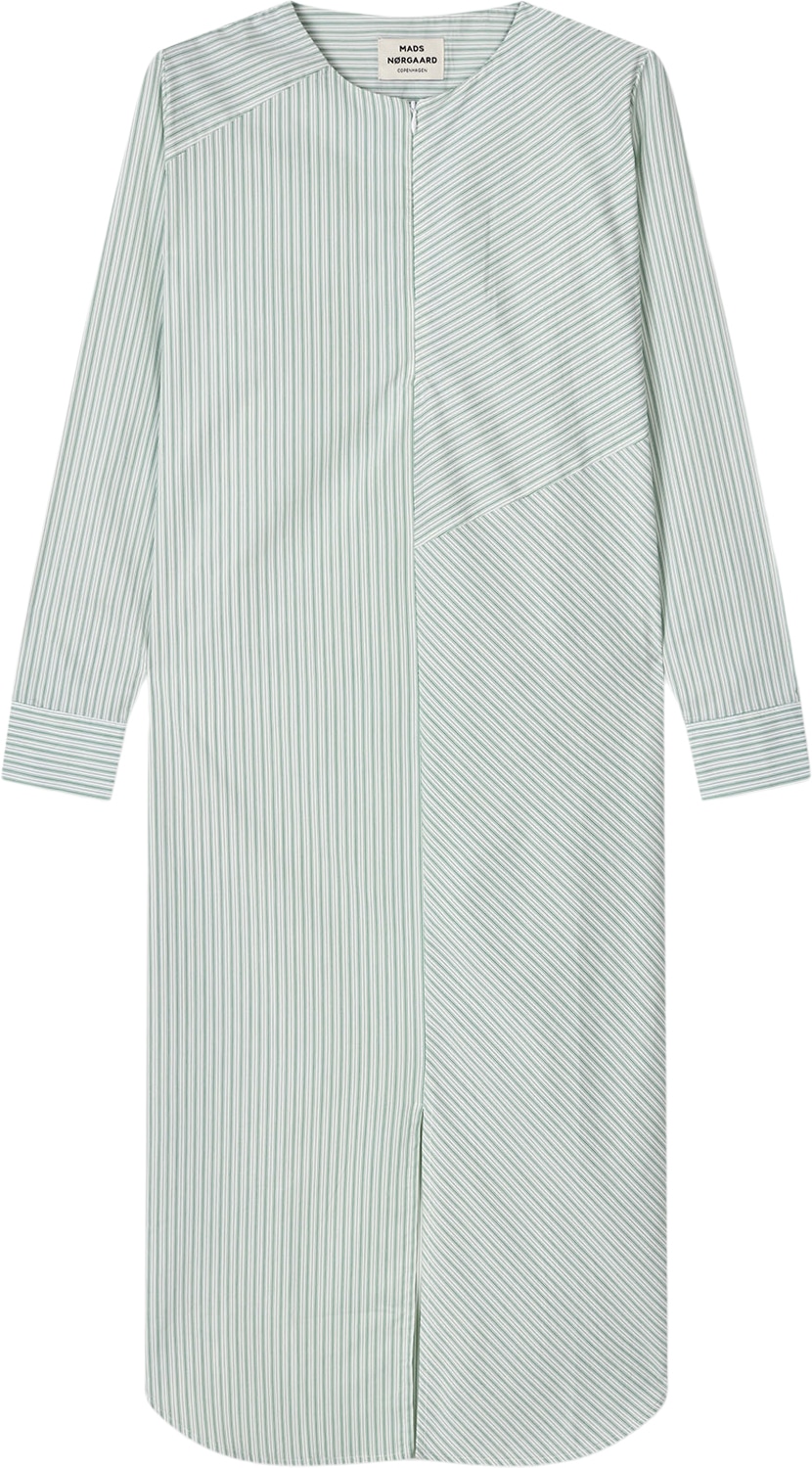 Kjolen Poplinda Rosaly skjuler en lynlås ved halsen, er læglang, let oversized og lige op og ned og har manchetter i de lange ærmer.