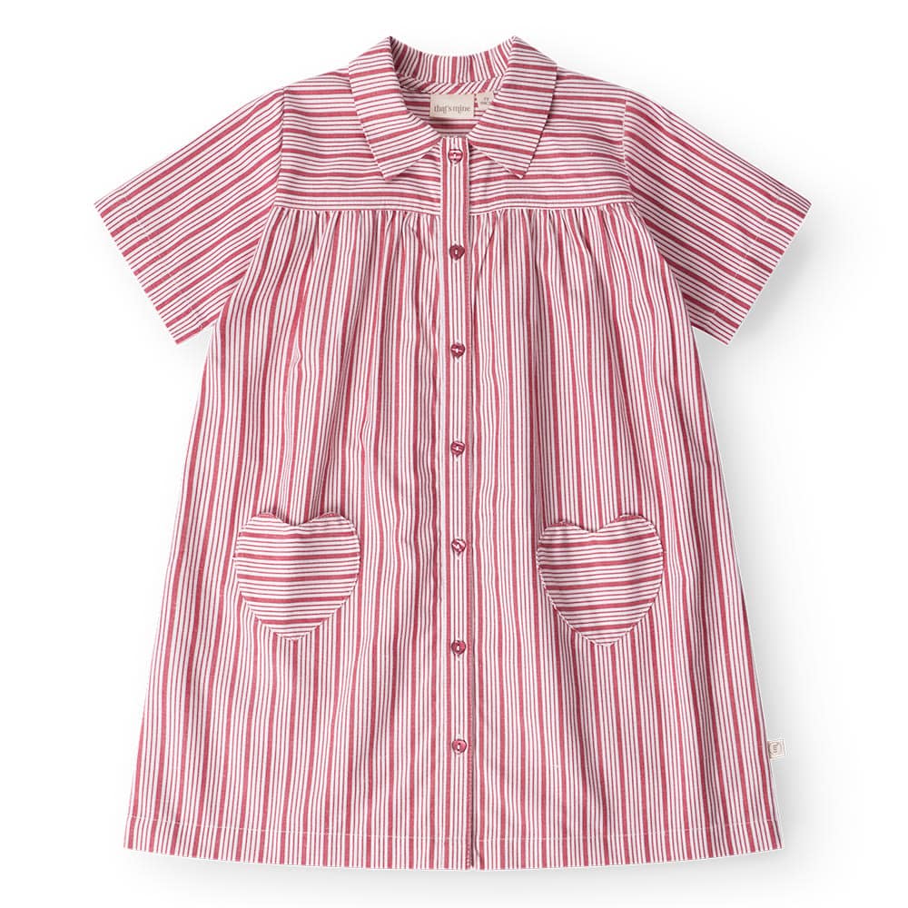 Forkæl dit barn med vores stribede skjortekjole i klassisk rød og hvid – perfekt til både hverdag og særlige lejligheder. ð Med søde hjerteknapper og to hjerteformede lommer, der tilføjer et ekstra charmerende touch til designet.