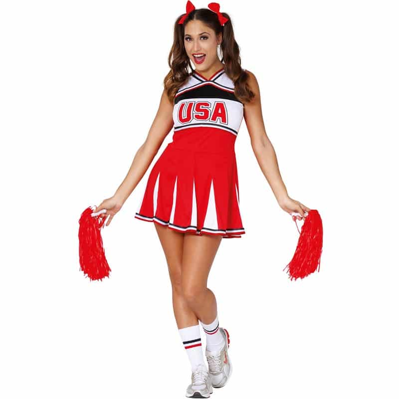 USA Cheerleader Kostume Rød/Hvid – Kjole